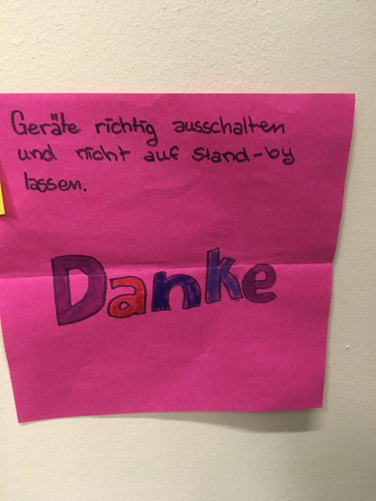 Die Klasse 4b nahm am 15.3.19 sowie am 18.3.19 an einem Energieprojekt des UfU (Unabhängiges Institut für Umweltfragen UfU e.V.) teil. Die SchülerInnen beschäftigten sich sowohl theoretisch als auch praktisch mit dem Thema “Energie/Energiesparen” in ihrem Alltag. So wurden beispielsweise die Raumtemperaturen an verschiedenen Orten der Schule gemessen und das korrekte Lüften im Klassenzimmer besprochen. Abschließend gingen die jungen Energieexperten durch die Schule und stellten ihre Energiespartipps vor.