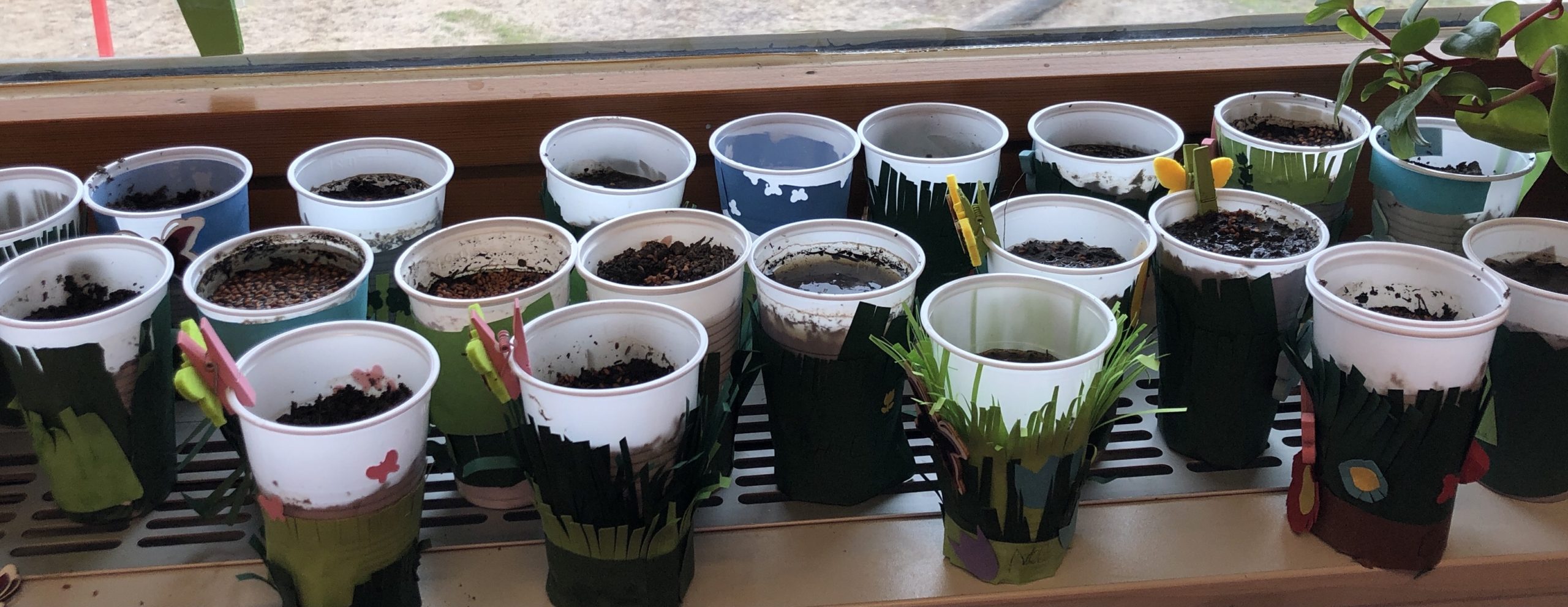 Beim Experimentieren mit Kressesamen sahen wir bereits nach wenigen Tagen erste Erfolge. Es grünte auf unserer Klassenwiese.