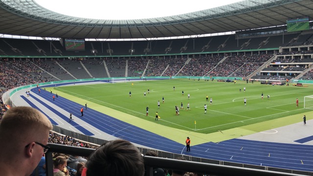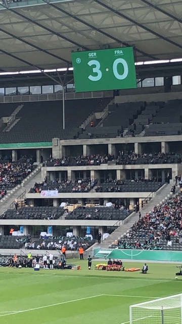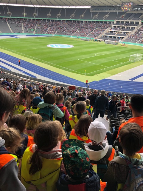 Am 28.5.2019 erlebten wir das Fußballspiel der U16 Deutschland gegen Frankreich live im Olympiastadion gemeinsam mit 20000 anderen Schülerinnen und Schülern. Besonderes Highlight war das gemeinsame Auflaufen ausgewählter Schüler unserer Schule mit den Spielern der Nationalmannschaft U16 auf das Spielfeld. Stolz durften sie das Spiel von der Ehrentribüne aus ansehen. Nach dem Spiel, das 3:0 endete, wurden noch viele Autogramme erhascht.
