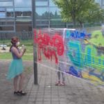 Nach monatelangen Skizzieren auf Blättern und mehreren verschiedenen Projekten zahlte sich letzten Freitag endlich die Geduld der Kinder aus und sie durften ihre ersten Sprühübungen auf unseren Schulhof machen.