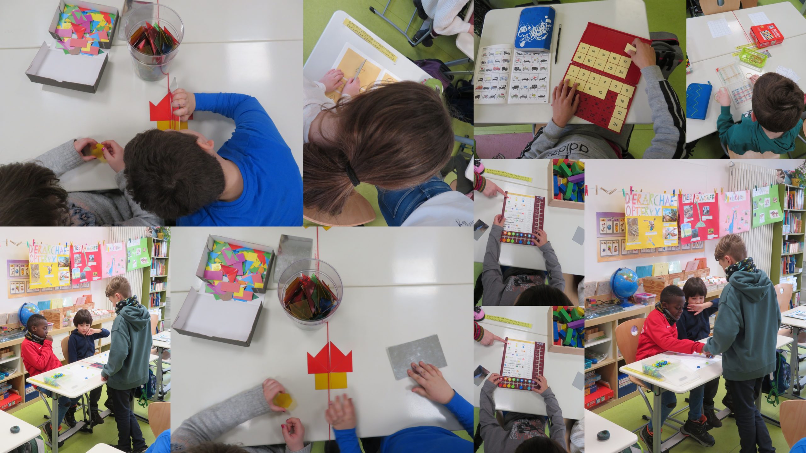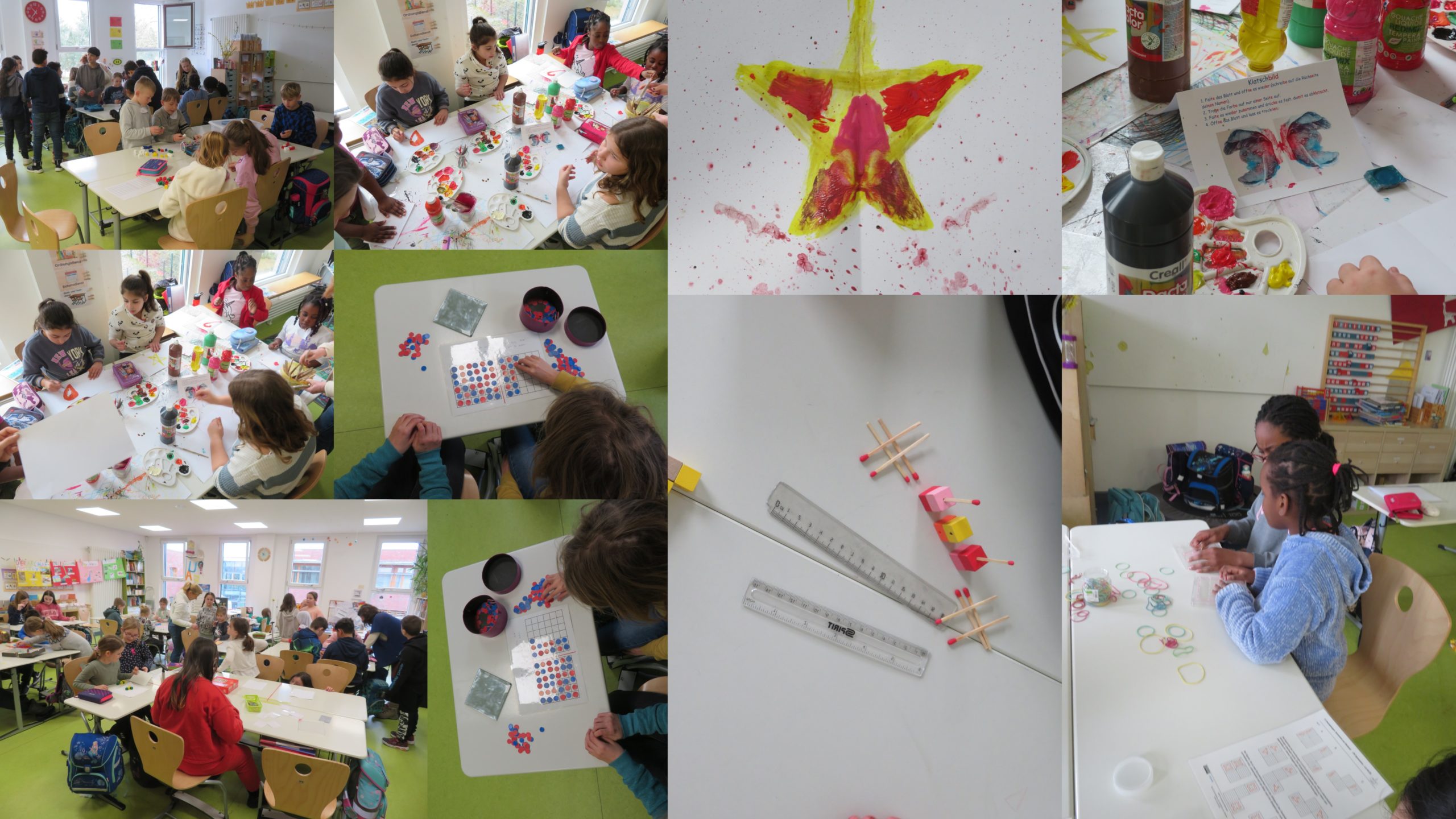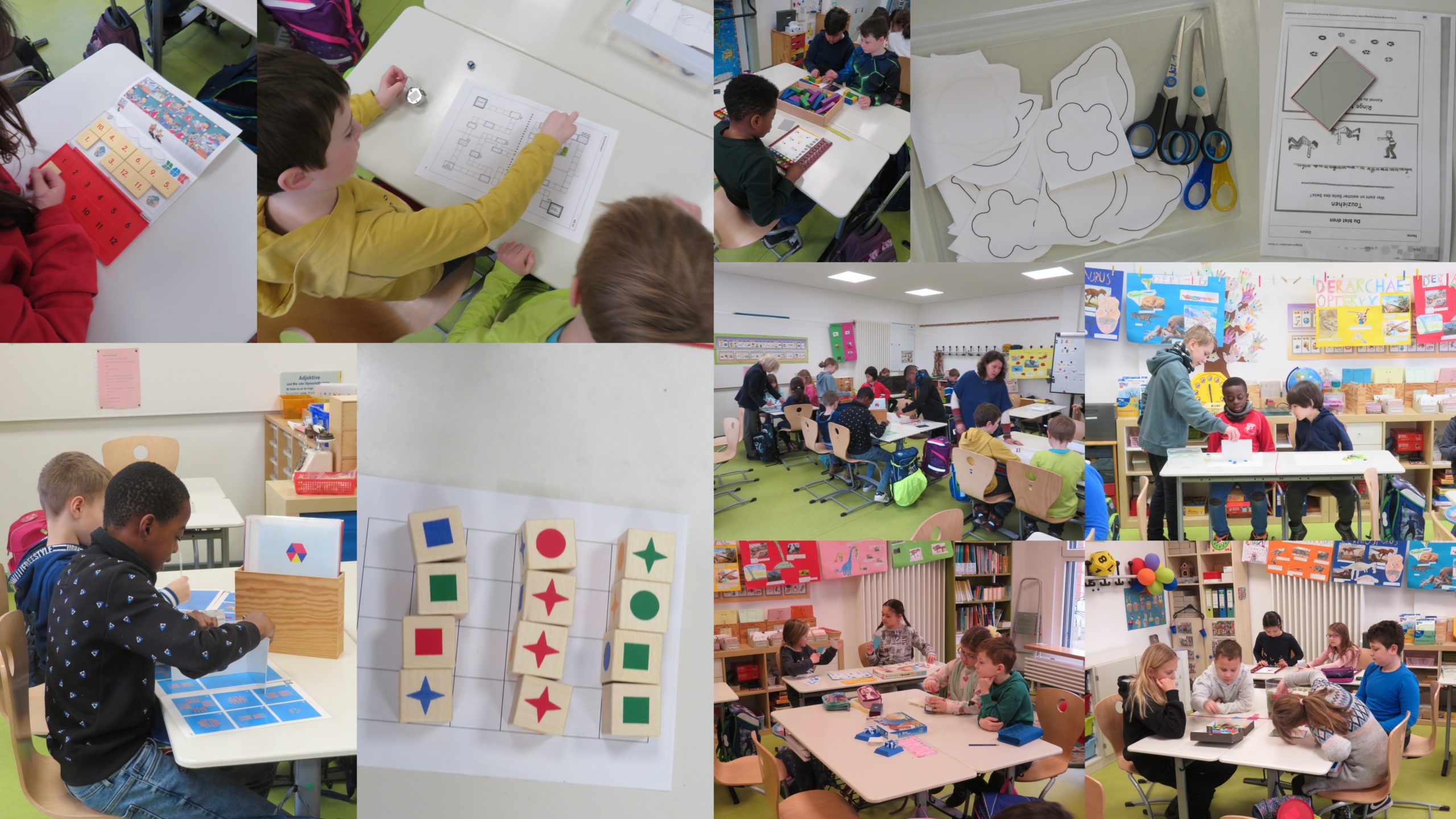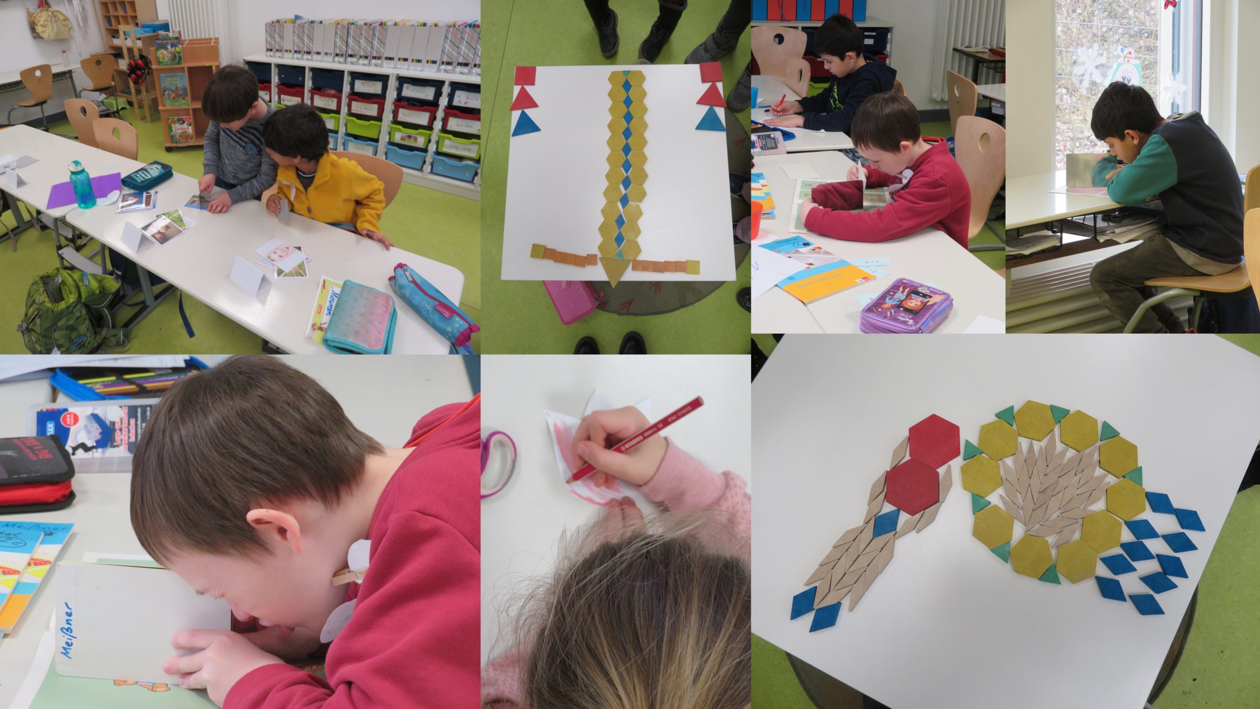 Wir öffneten für 4 Unterrichtsstunden alle Räume der JüL-Gruppen 1-3, so dass die Kinder verschiedenste Angebote der Symmetrie ausprobieren und erforschen konnten.