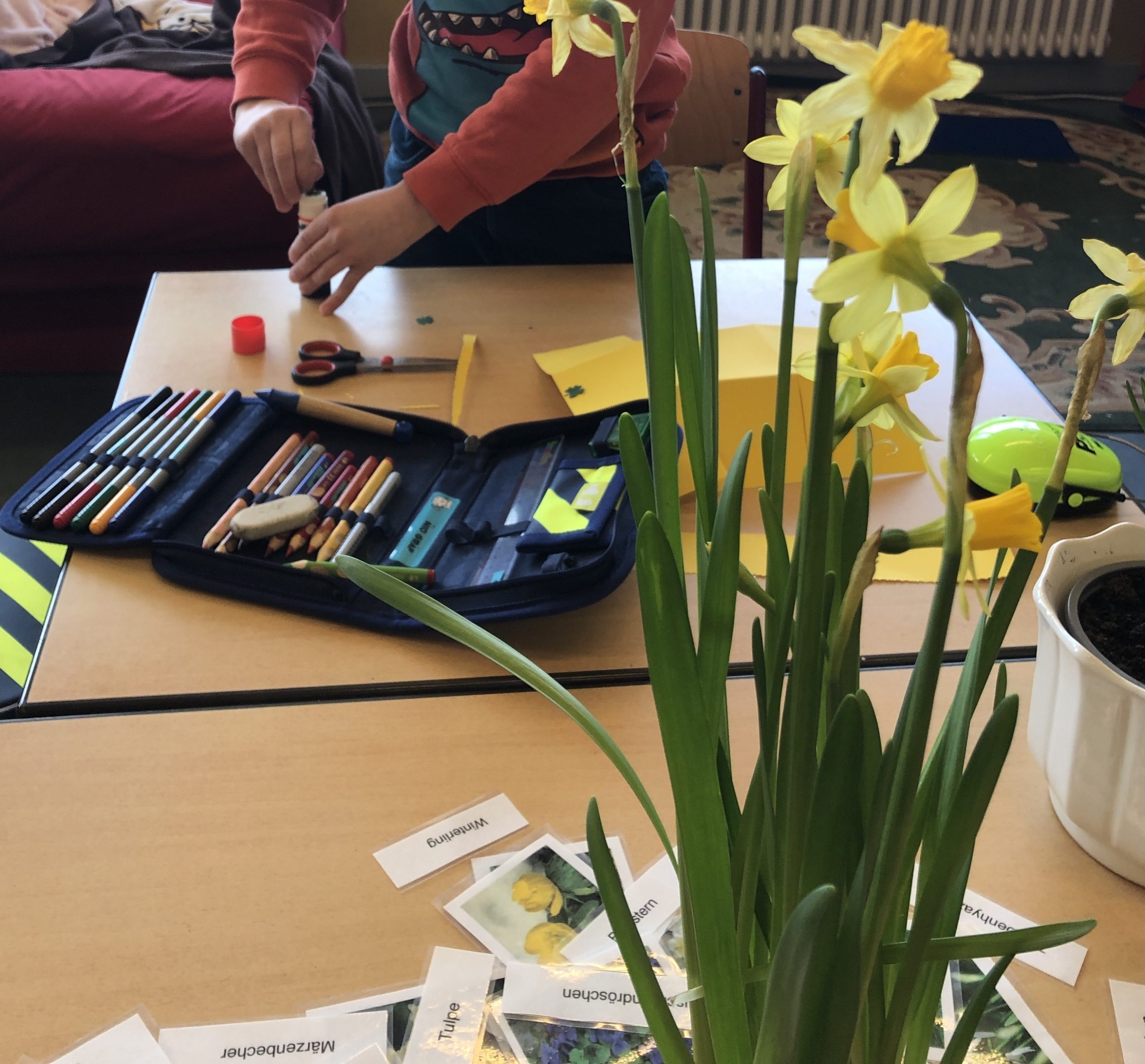 Trotz des Wechselunterrichts durfte unser Osterprojekttag in diesem Jahr nicht fehlen. Die Kinder bastelten unter anderem Osterkörbchen, die der Osterhase befüllte und auf der Wiese versteckte. Wir hörten dazu die Osterhasenwerkstatt von Rolf Zuckowski mit dem herrlich fröhlichen Lied: „Frohe Ostern!“.