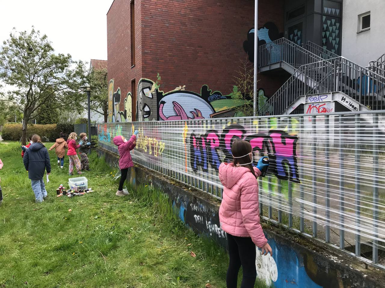 Für viele von ihnen war es das erste Mal und die Ergebnisse konnten sich wirklich sehen lassen. Wir nutzten den Tag und veranstalteten diesmal hinter der Schule unsere kleine Graffiti-AG.