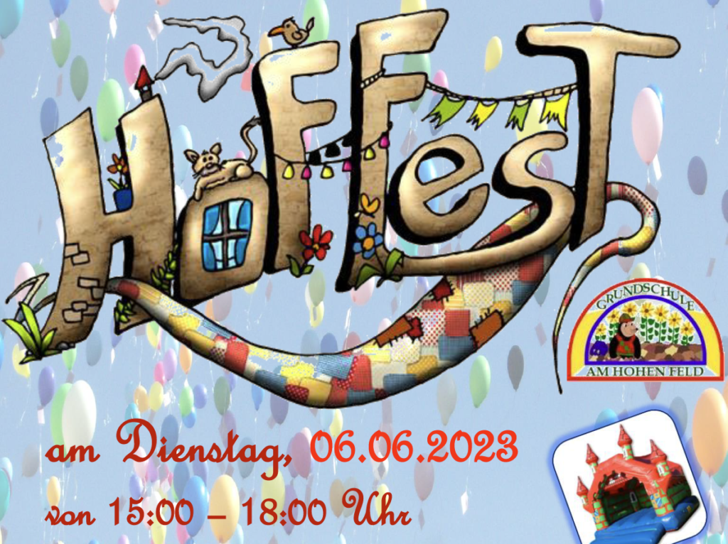 YEA! UnserHoffest findet bald statt! Am Dienstag, 06.06.2023 von 15:00 – 18:00 Uhr Grundschule am Hohen Feld Bedeweg 1, 13125